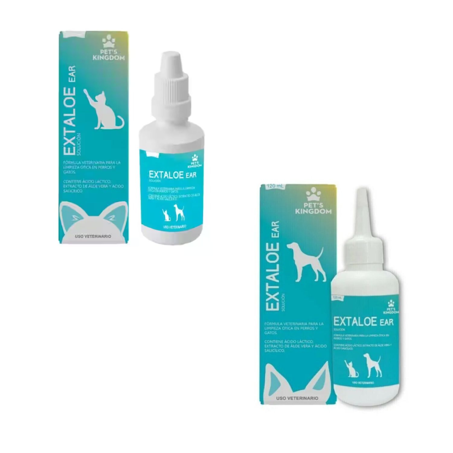 Extaloe Ear Limpiador sirve para la limpieza rutinaria del canal auditivo en perros y gatos y como coadyuvante antes o durante procesos óticos, por ejemplo como preparación previa a tratamientos de otitis externa. Su fórmula ceruminolítica ayuda a desprender y emulsificar la suciedad y el exceso de cerumen, mientras que los ácidos orgánicos contribuyen a secar y acidificar el canal para facilitar la eliminación de restos. El aloe vera aporta hidratación y ayuda a mantener la piel del oído en buen estado. Está disponible en varias presentaciones según la necesidad.