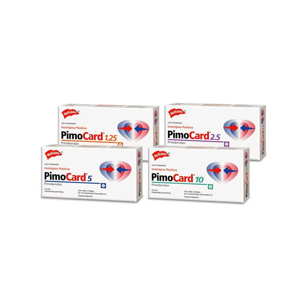 Pimocard es un medicamento veterinario para perros indicado como apoyo en la insuficiencia cardíaca congestiva asociada a cardiomiopatía dilatada o a enfermedad valvular (regurgitación mitral y/o tricúspide). Actúa mejorando la fuerza de contracción del corazón y ayudando a disminuir la resistencia de los vasos, para facilitar el bombeo y el flujo sanguíneo. Se ofrece en varias presentaciones según los miligramos por tableta. Usar bajo indicación y supervisión del médico veterinario.