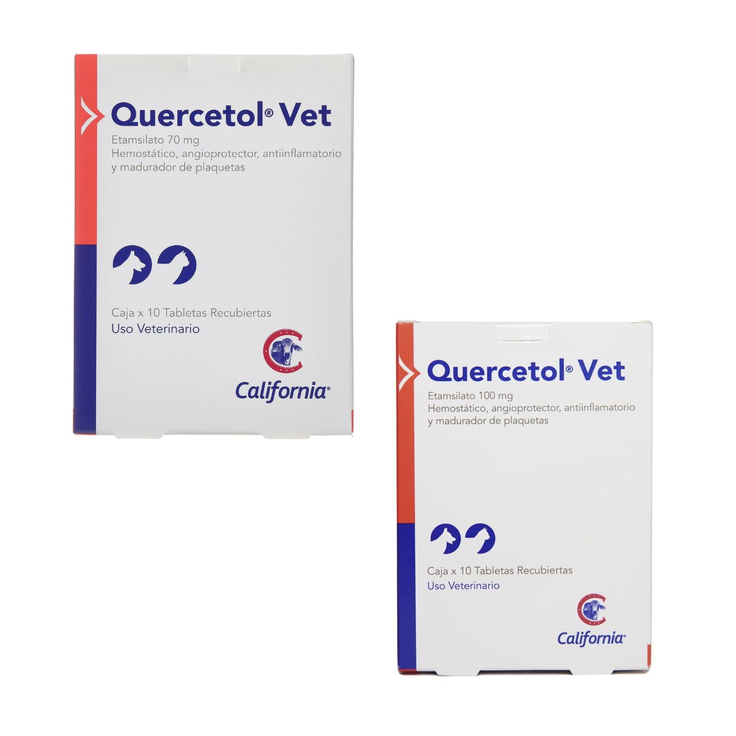Quercetol Tabletas es un hemostático sistémico para perros y gatos, indicado como coadyuvante en el control de hemorragias por trauma, procesos patológicos y en el periodo pre y postquirúrgico (incluye procedimientos odontológicos y manipulaciones obstétricas). Su acción se basa en etamsilato, que ayuda a mejorar la hemostasia y la formación del tapón plaquetario. Está disponible en varias presentaciones según los miligramos por tableta. Venta bajo fórmula y uso bajo supervisión del médico veterinario.